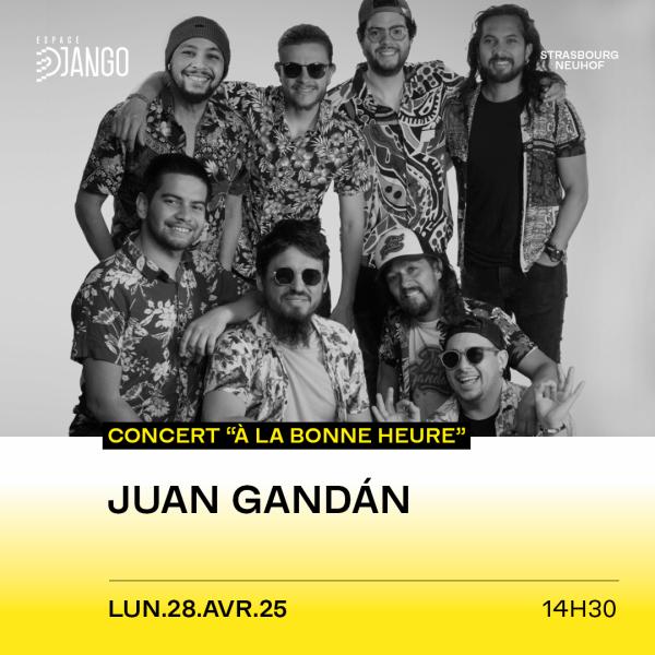 Pour fêter le printemps, nous avons invité les Juan Gandán, huit musiciens de haut vol pour un tourbillon musical unique qui marie la salsa traditionnelle et les influences jazz et funk. Si vous avez eu la chance de les voir lors de nos Concerts aux Fenêtres, vous savez déjà qu’il faut se préparer à danser. Pour l’occasion ce concert « à la bonne heure » sera proposé en configuration debout, avec quelques assises disponibles pour les personnes qui le souhaitent.